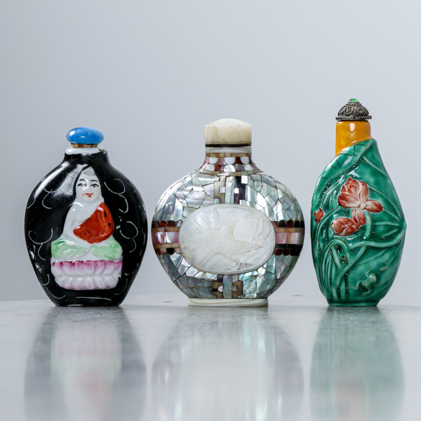 Snusflaskor, 3 st, porslin, pärlemo, Kina, 1800/1900-tal
