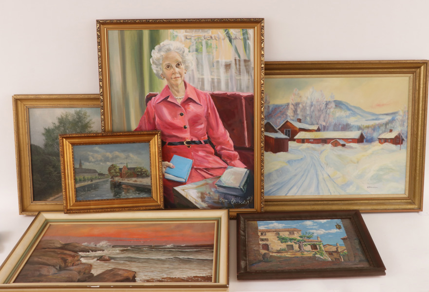 Oljemålning, porträtt, Bruno Karlsson. Oljemålning, Frans van Bruggen, m.m.