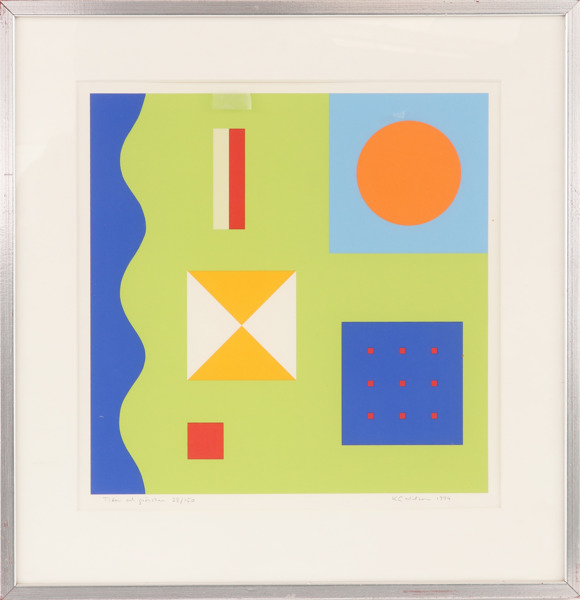 Färglitografi, "Tiden och grönskan". Signerat och numrerat. Daterat 1994. Inramat.