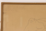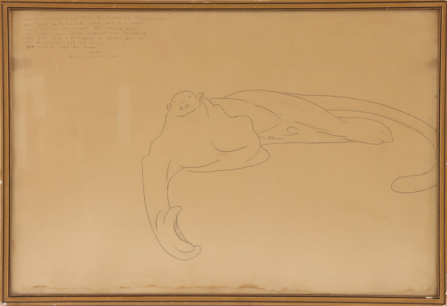 Teckning, självporträtt. Signerat, med dedikation. Inramat.