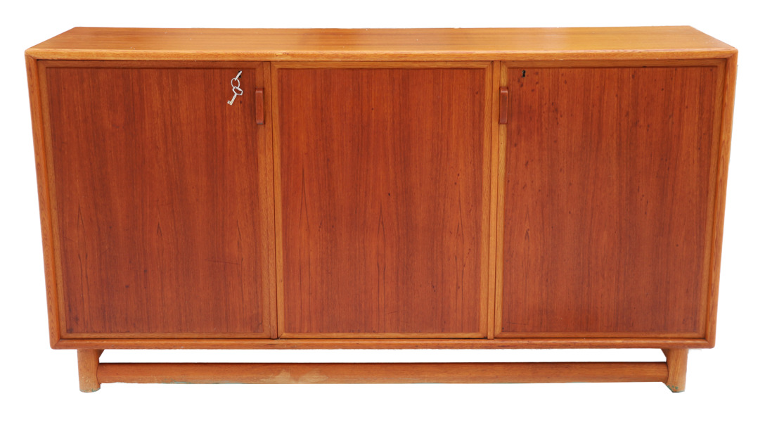 Teak. Med tre dörrar. Nyckel finns.