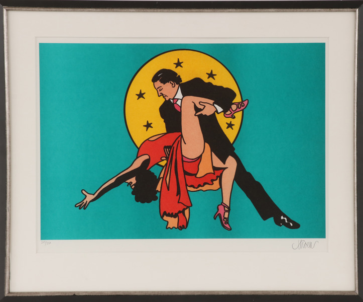 Färglitografi, "Tango för två". Signerat och numrerat. Inramat.