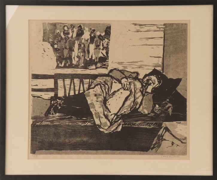 Färgträsnitt, ""Astrid vilar, 1982"". Signerat och numrerad 1/15. Daterat 82. Inramat.