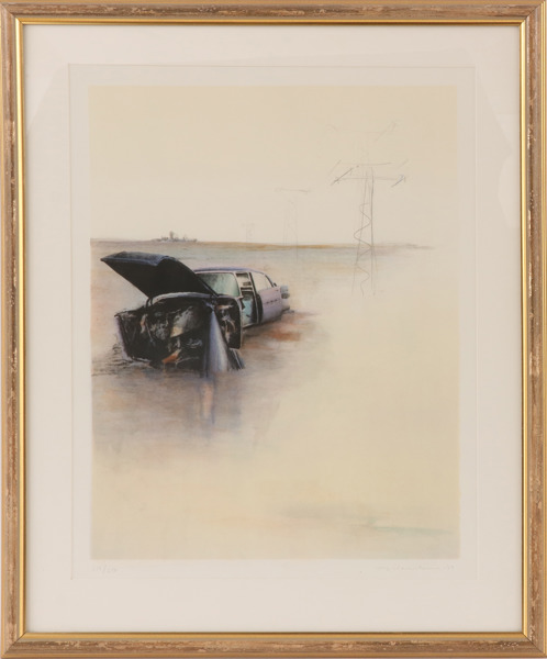 Färglitografi, bilskrot. Signerat och numrerat. Daterat 79. Inramat.