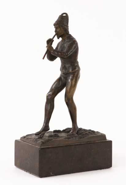 Skulptur i brons, råttfångaren från Hameln. Sockel av marmor. Signerad.
