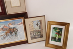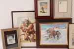 Akvareller 2st, motiv med vikingar. Akvarell, motiv från Warsawa. Oljemålning, vinterbild, signerad Sproge, m.m.