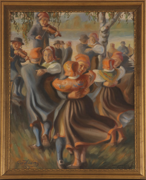 Olja på duk, "Midsommardans Floda". Signerad och daterad 1933.