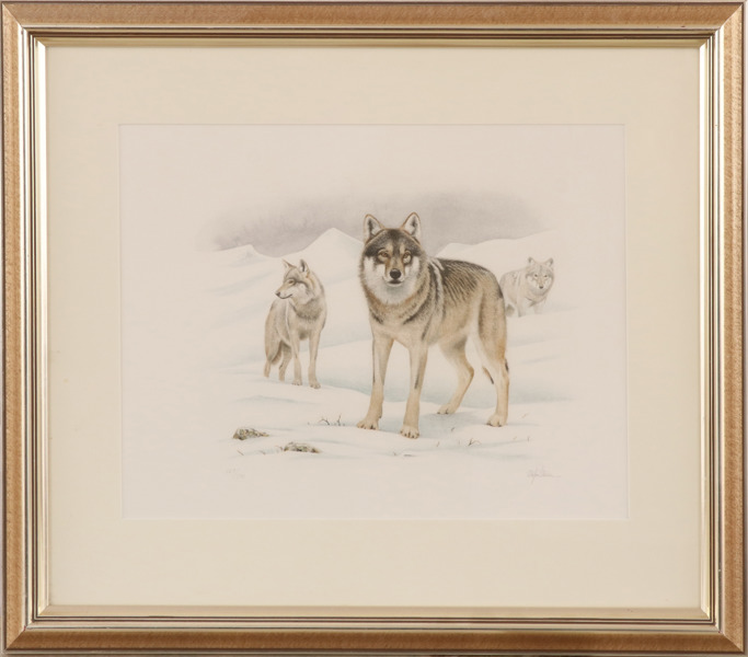 Färglitografi, vargar. Signerad och numrerad. Inramad.