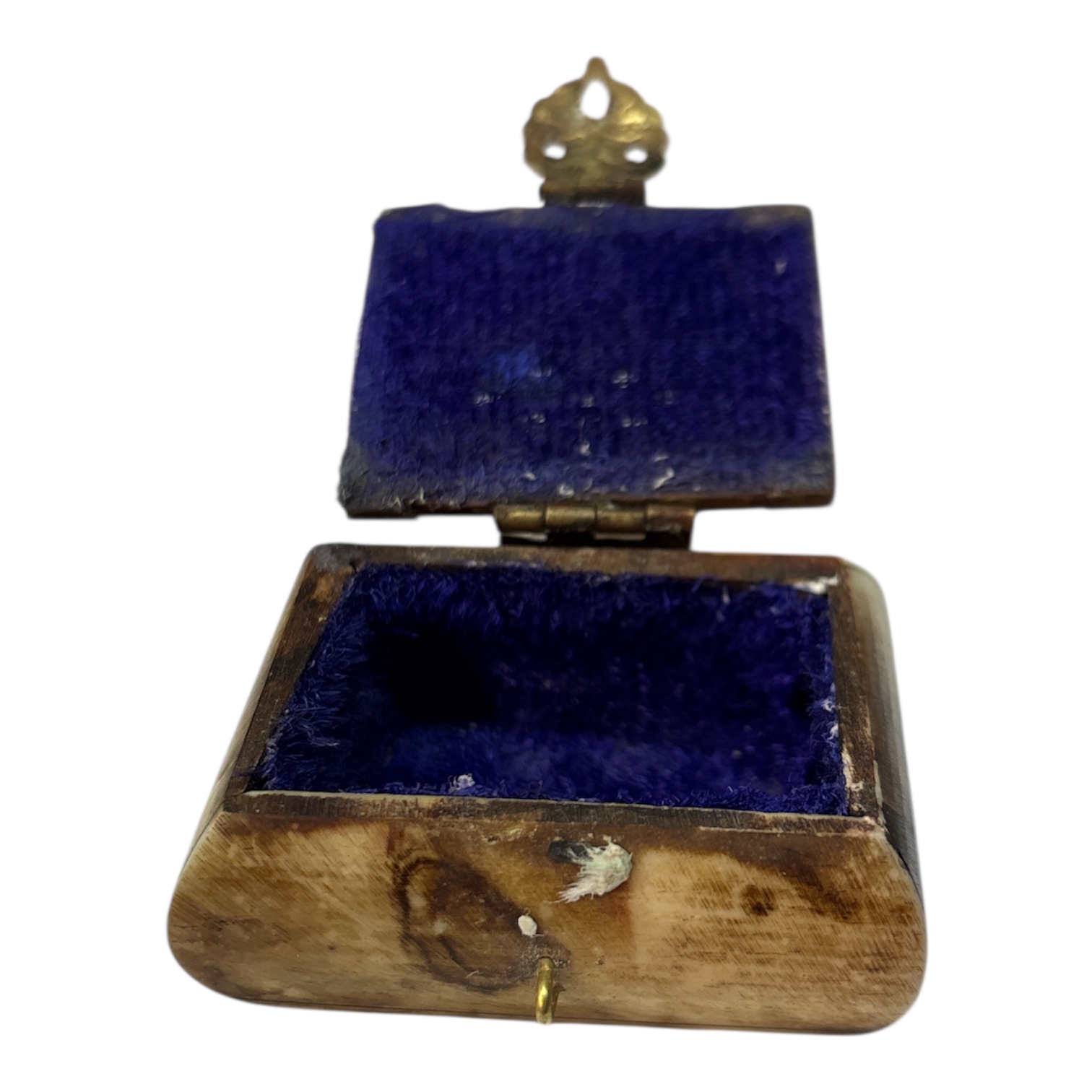 Bilder Orientalisk dosa i ben med mässingsbeslag och geometrisk intarsiadekor