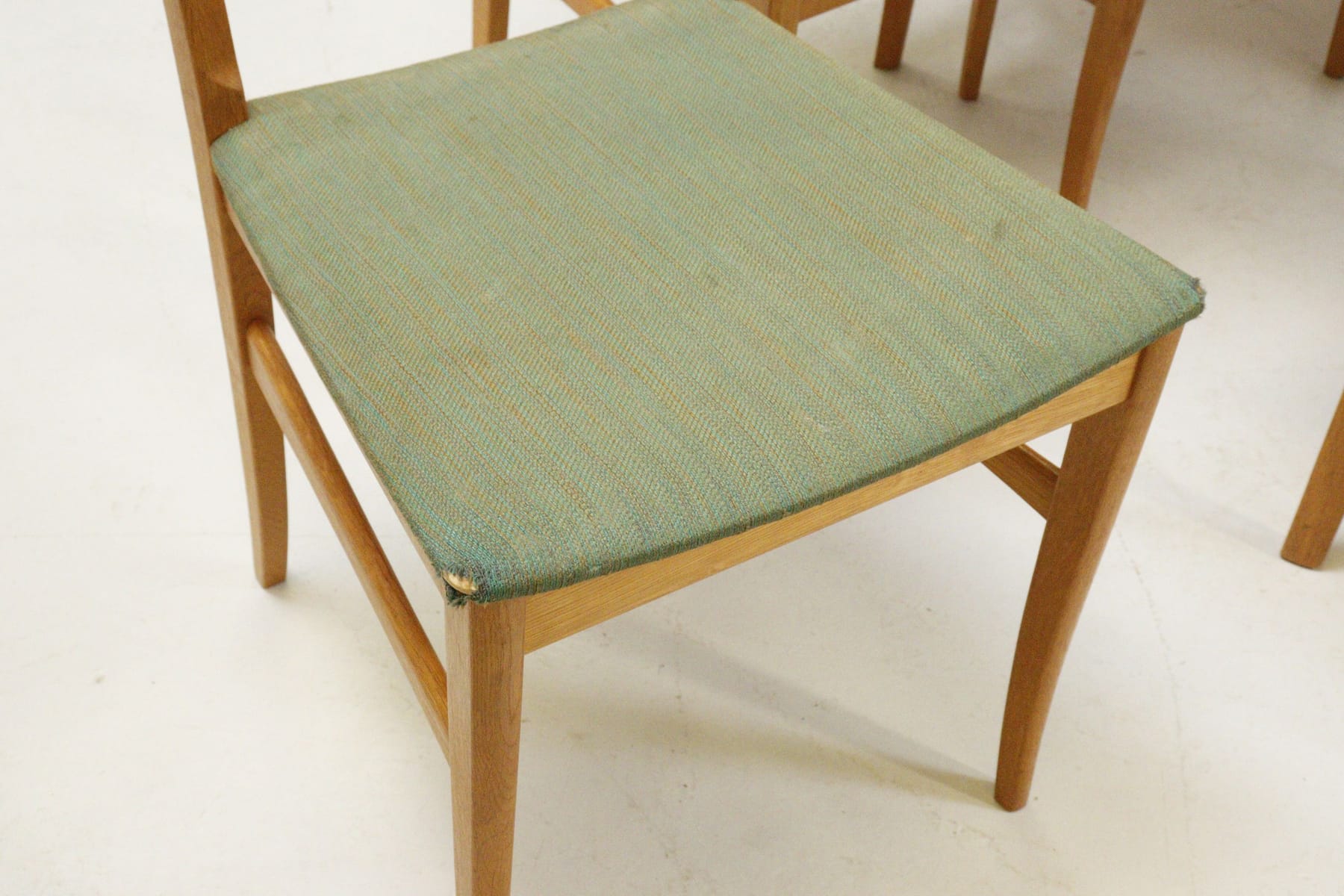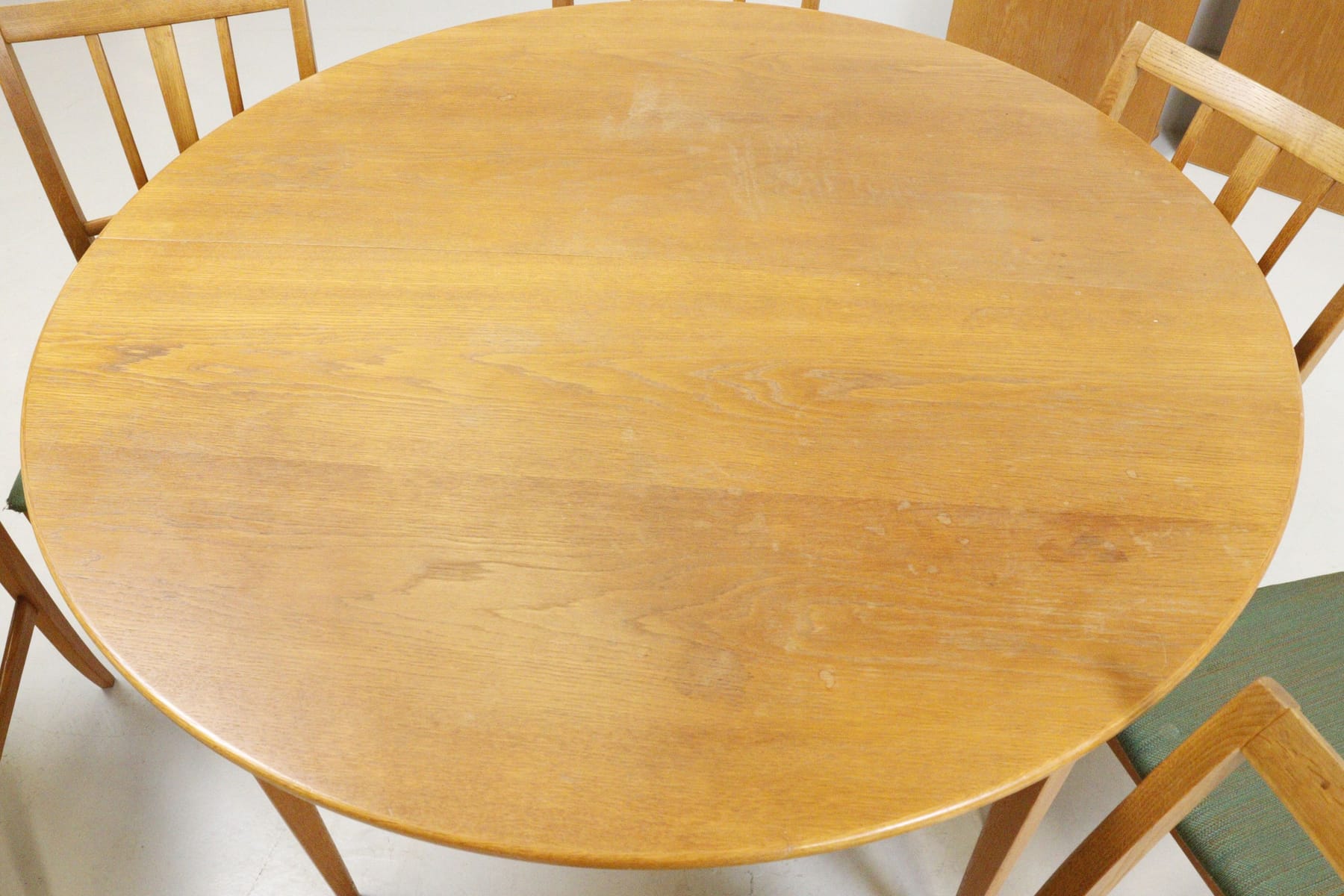 Bilder Matgrupp, ek, Carl Malmsten, Waggeryds Möbelfabrik, bord med 6 stolar och 2 iläggsskivor