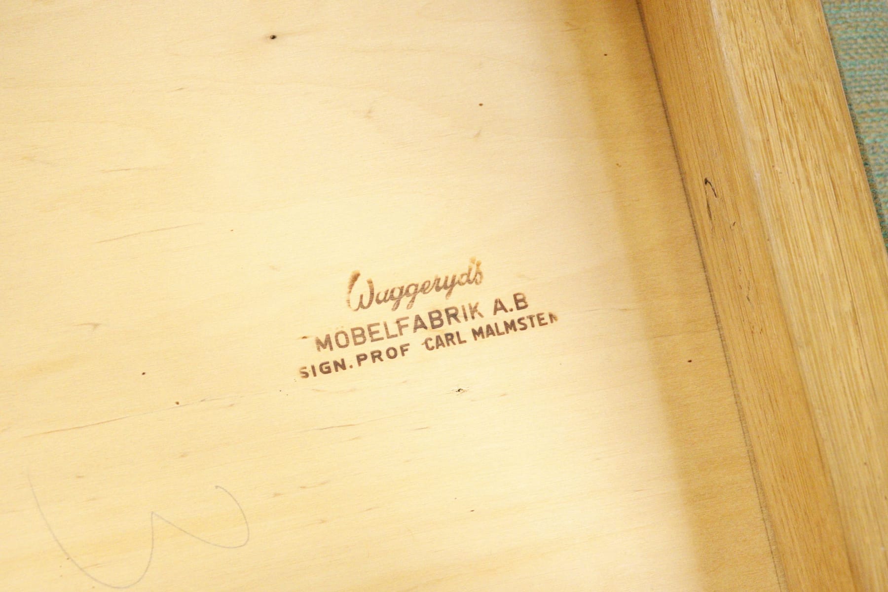 Matgrupp, ek, Carl Malmsten, Waggeryds Möbelfabrik, bord med 6 stolar och 2 iläggsskivor