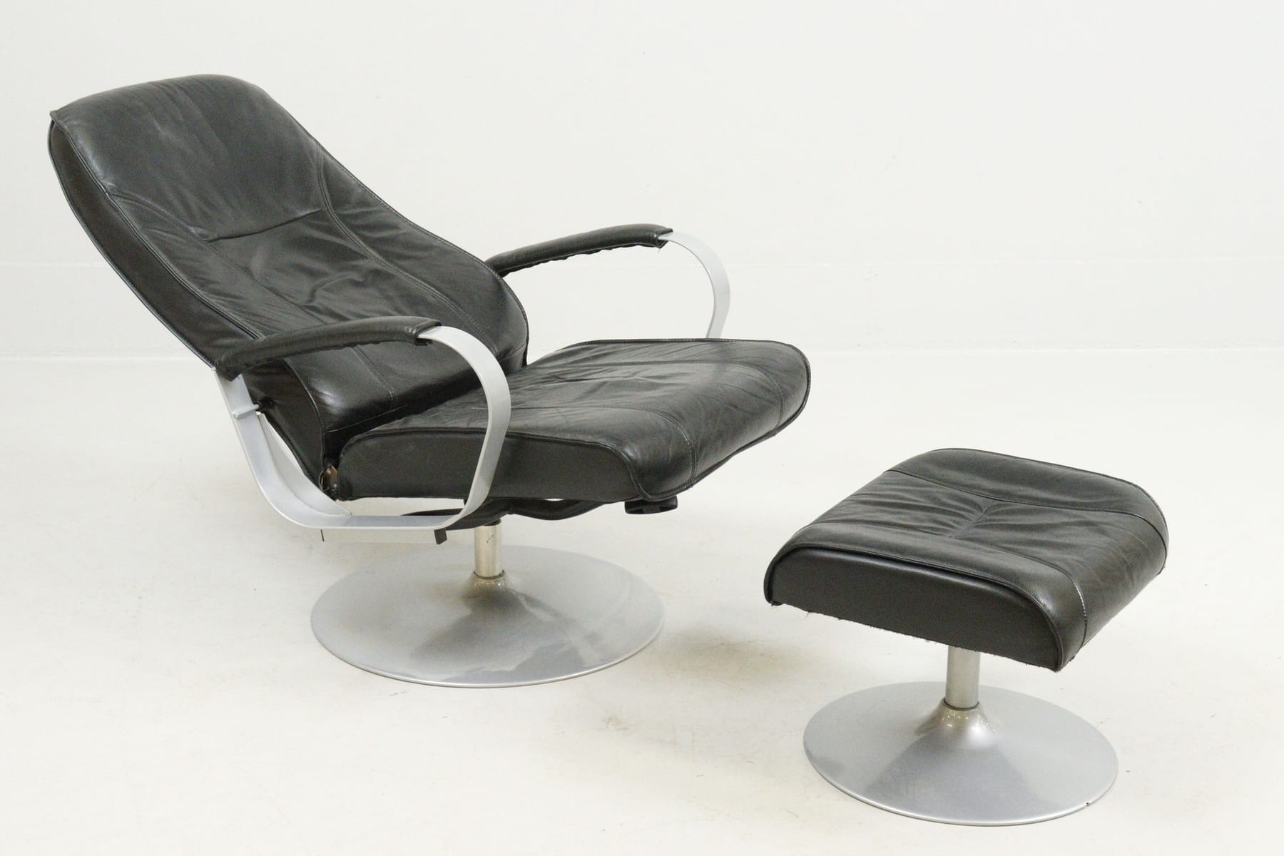 Snurrfåtölj med fotpall, skinn, fällbar