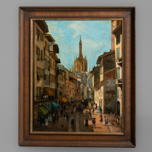 GIUSEPPE CANELLA, efter, olja på duk, motiv av La Corsia De Servi a Milano nell Anno 1837.