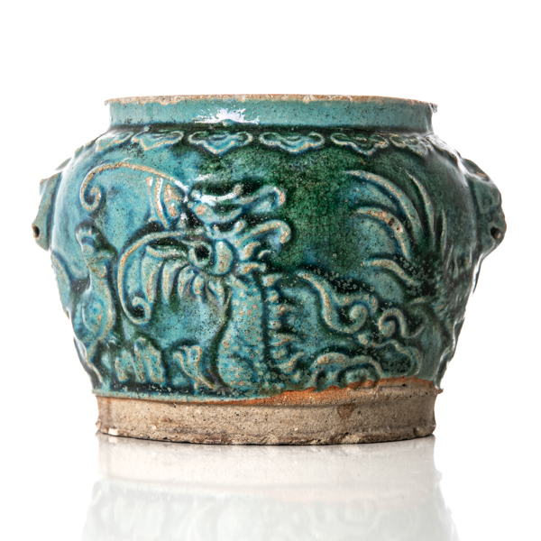 AN ASIAN ANTIQUE POT, possibly Vietnam, green glazed, probably 19th century.