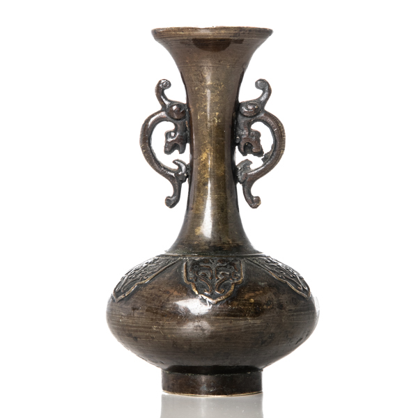 Vase, bronze, China, with dragon handles, archaistic decoration, 19th/20th century.