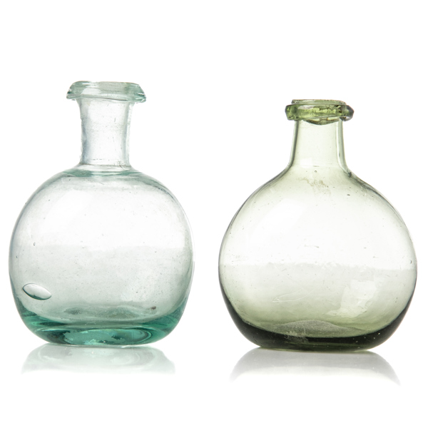 MINIATYRFLASKOR, 2 st, olika nyanser av gröntonat glas, 1800-tal.