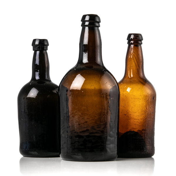 FLASKOR, 3 st, bruntonat glas , 1800-talets första hälft