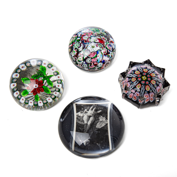 BREVPRESSAR, 4 st, glas, med blomstermotiv samt en med erotiskt motiv.