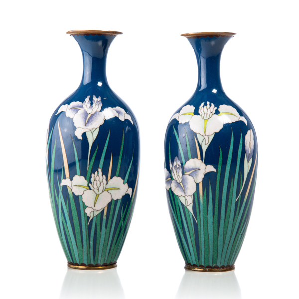A PAIR OF CHINESE VASES, Cloisonné, flowers in enamel on brass, 20th century.