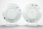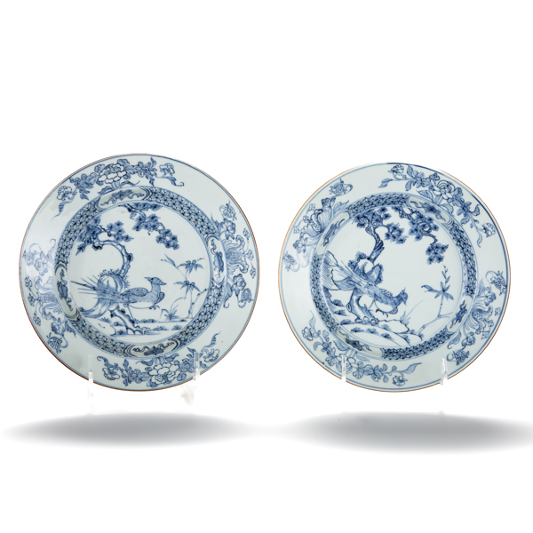 TWO CHINESE PLATES, decorated with peacocks in underglaze blue, Qianlong period (1736-1795).