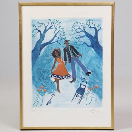 "Lyftande fåglar", provtryck, ca 35 x 26, inkl ram 52 x 42 cm