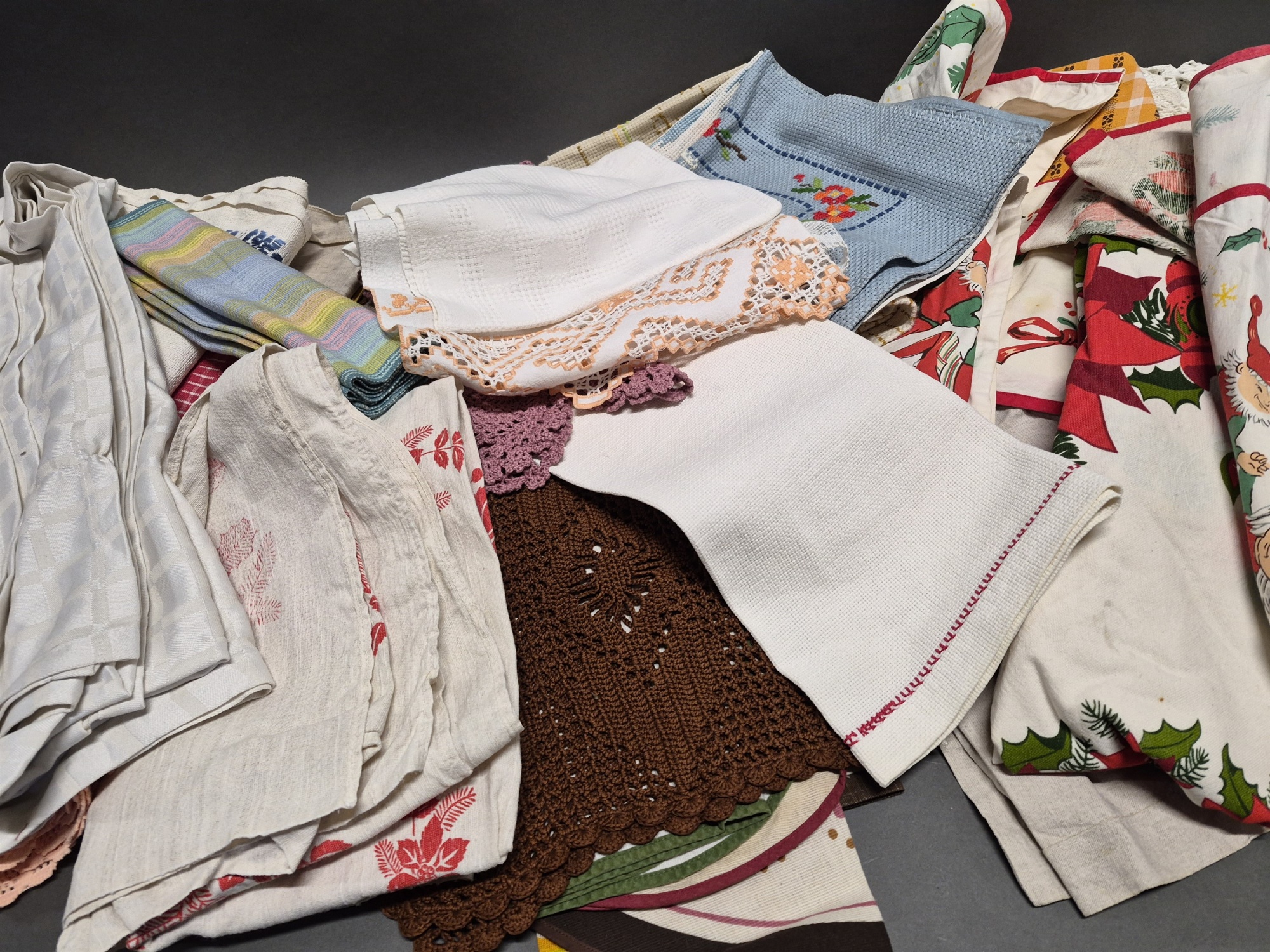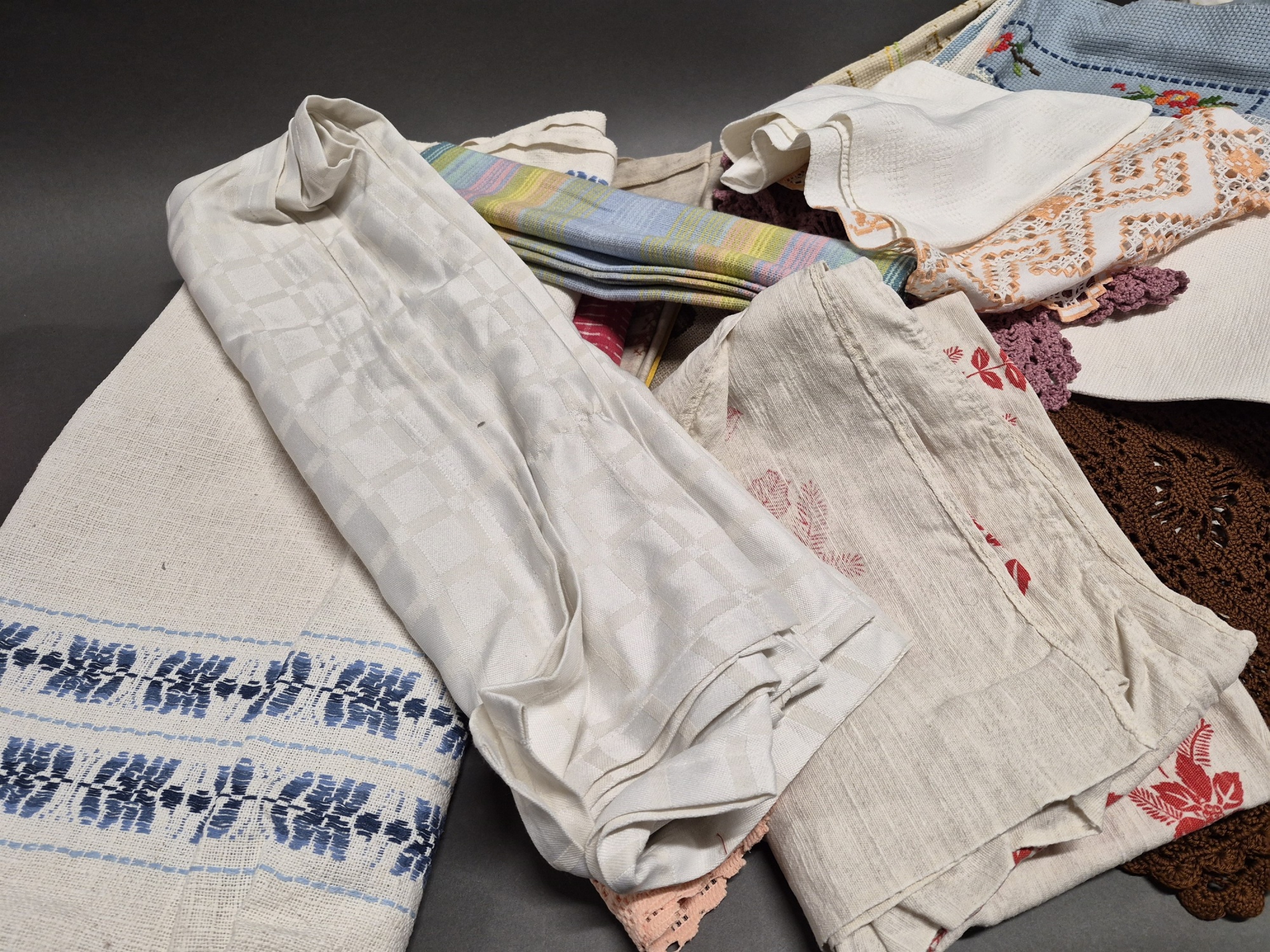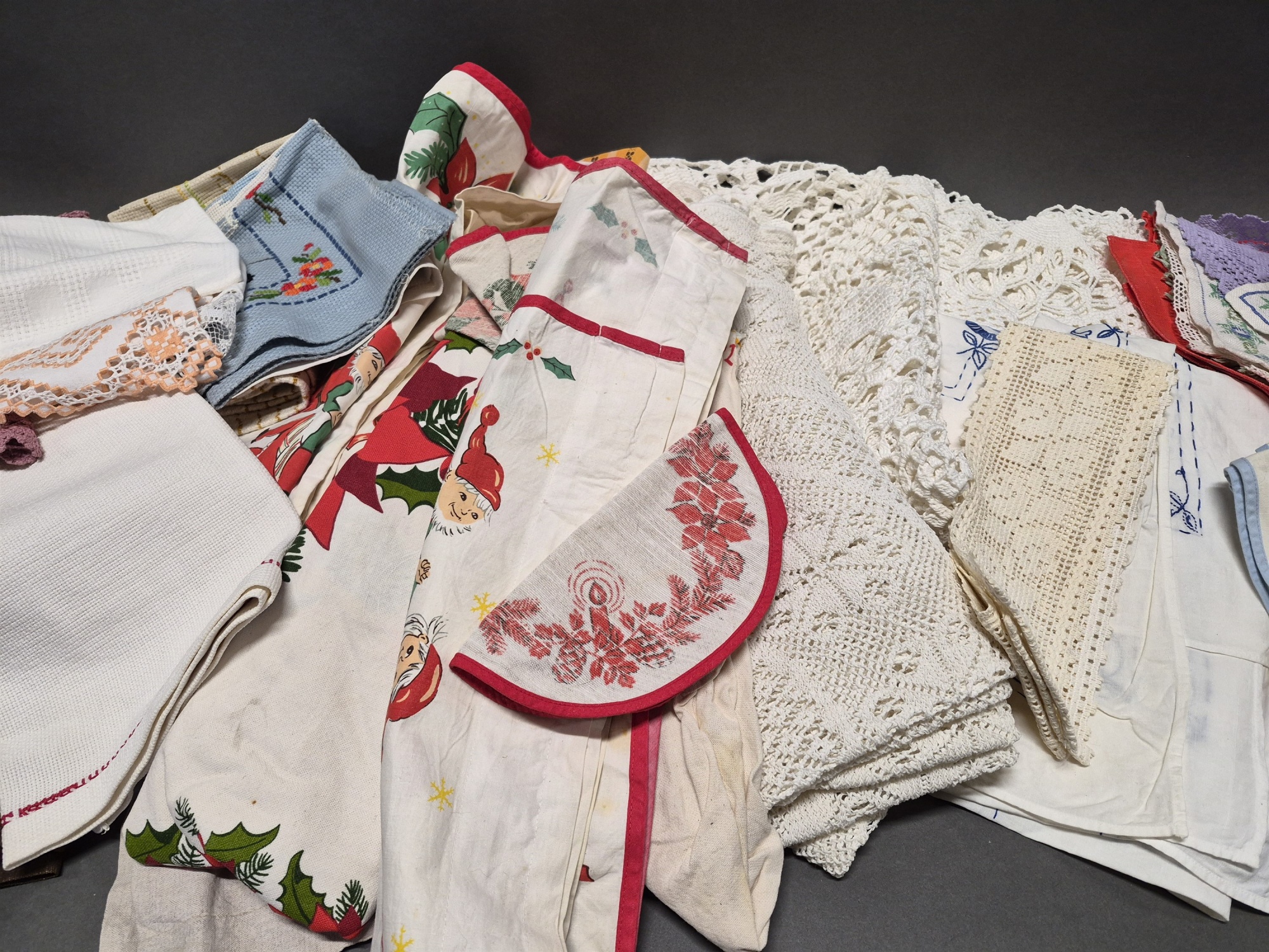 Parti textilier bla virkat och jultextil