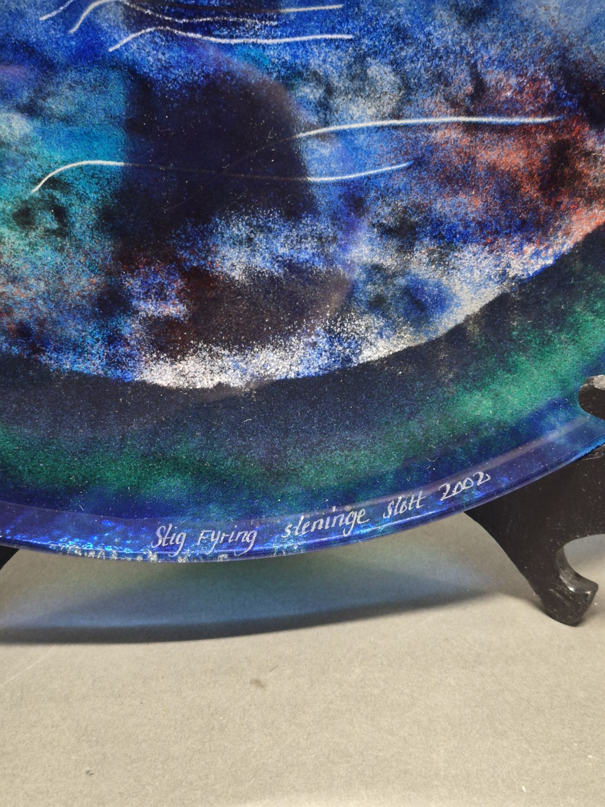 Fat Stig Flying "Steninge slott 2002", glas, diameter 36,5 cm