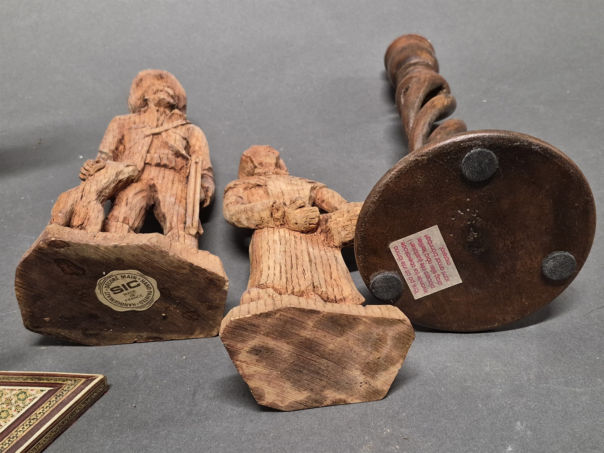 Bilder Parti träföremål, bla skulpturer ljusstake högsta 25 cm
