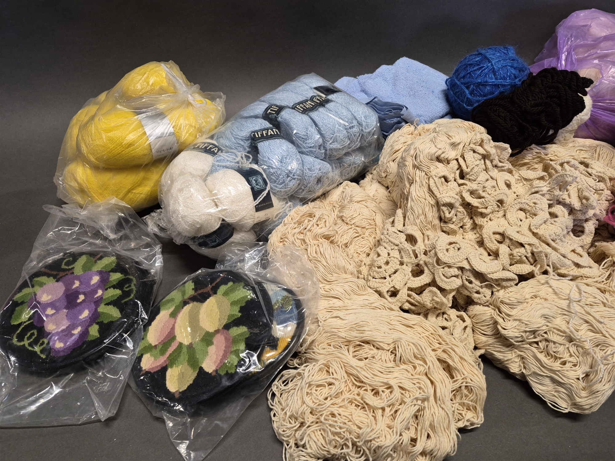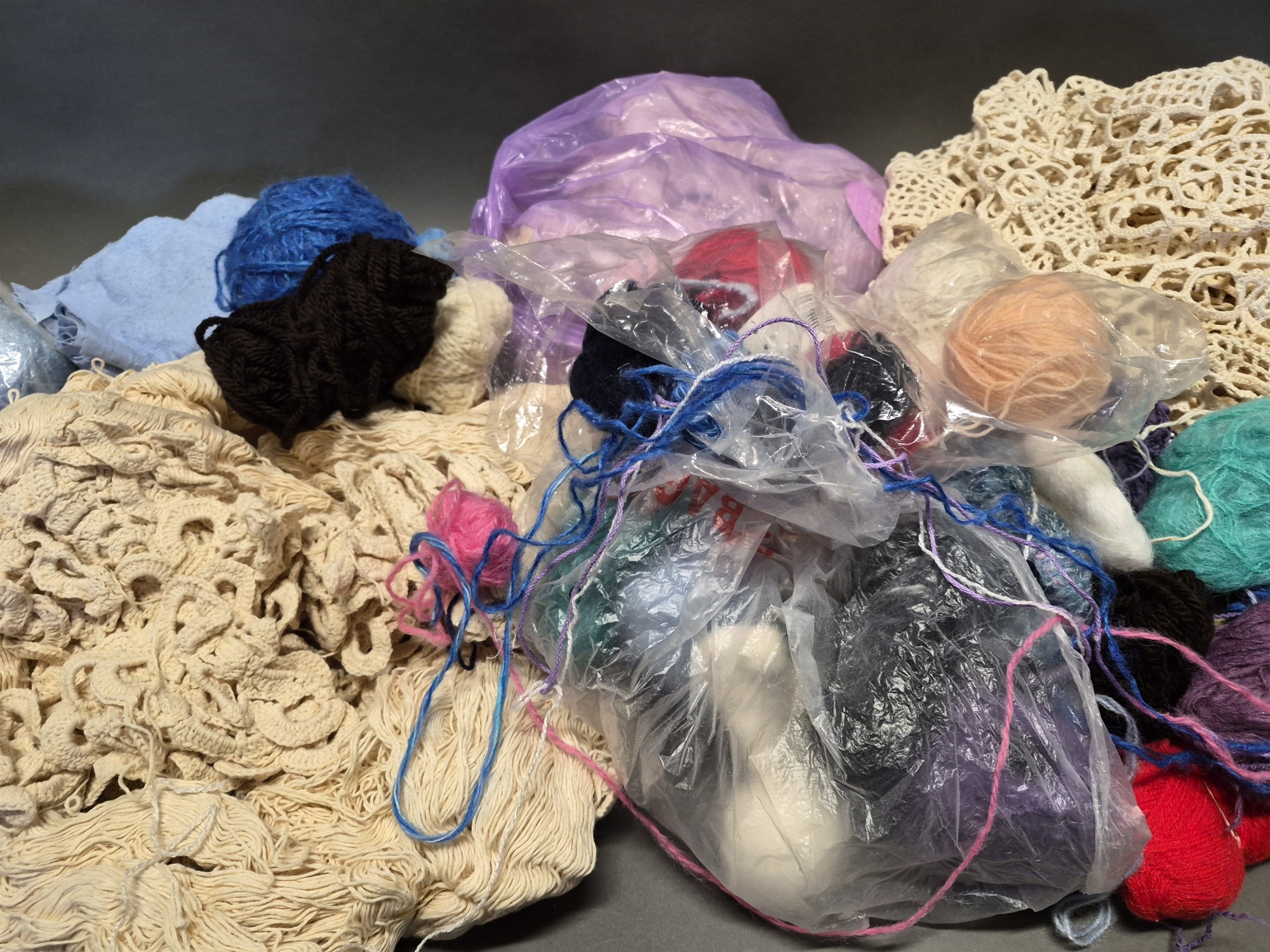 Parti garner och påbörjat virkat projekt,fläckar finns