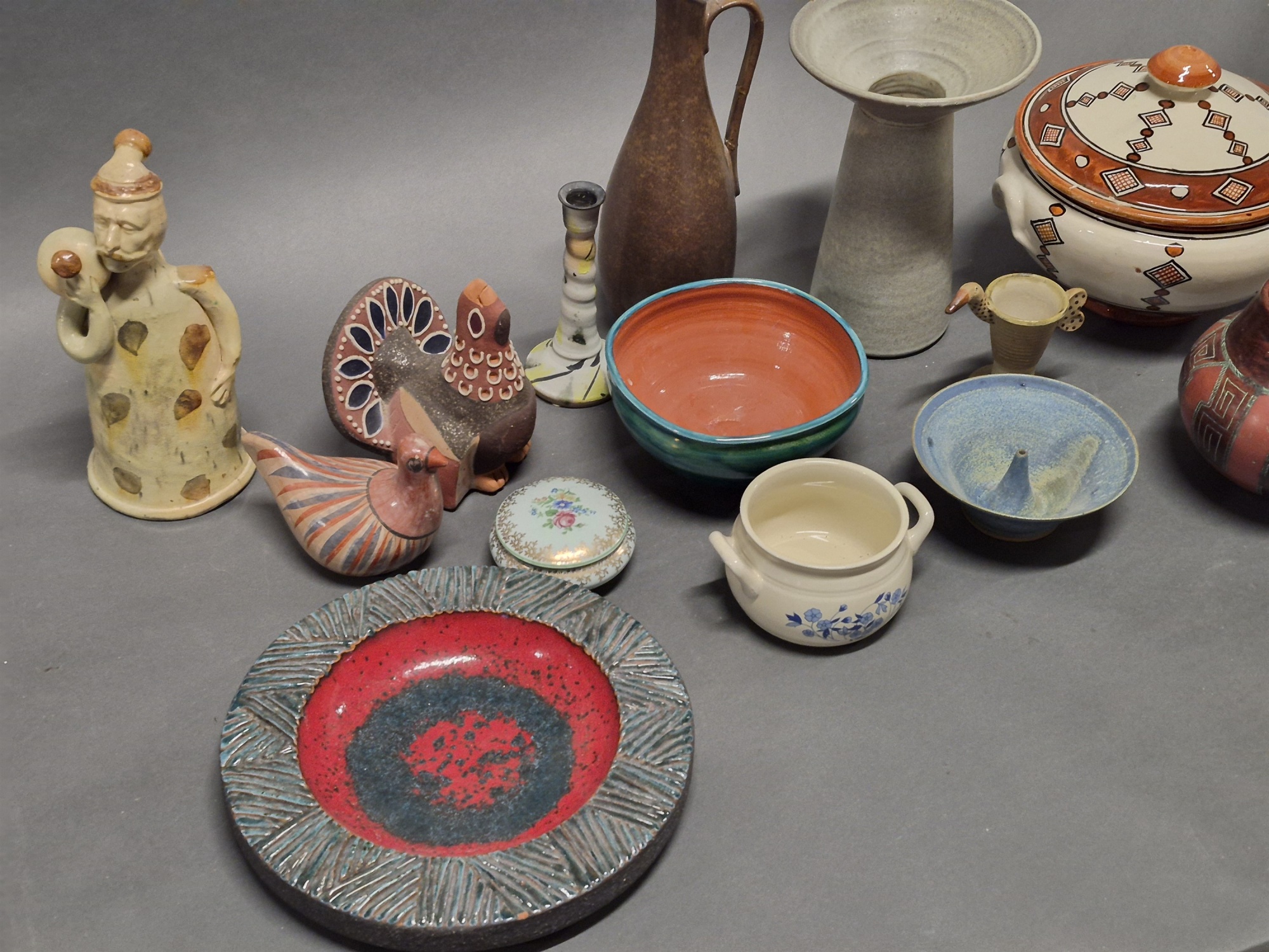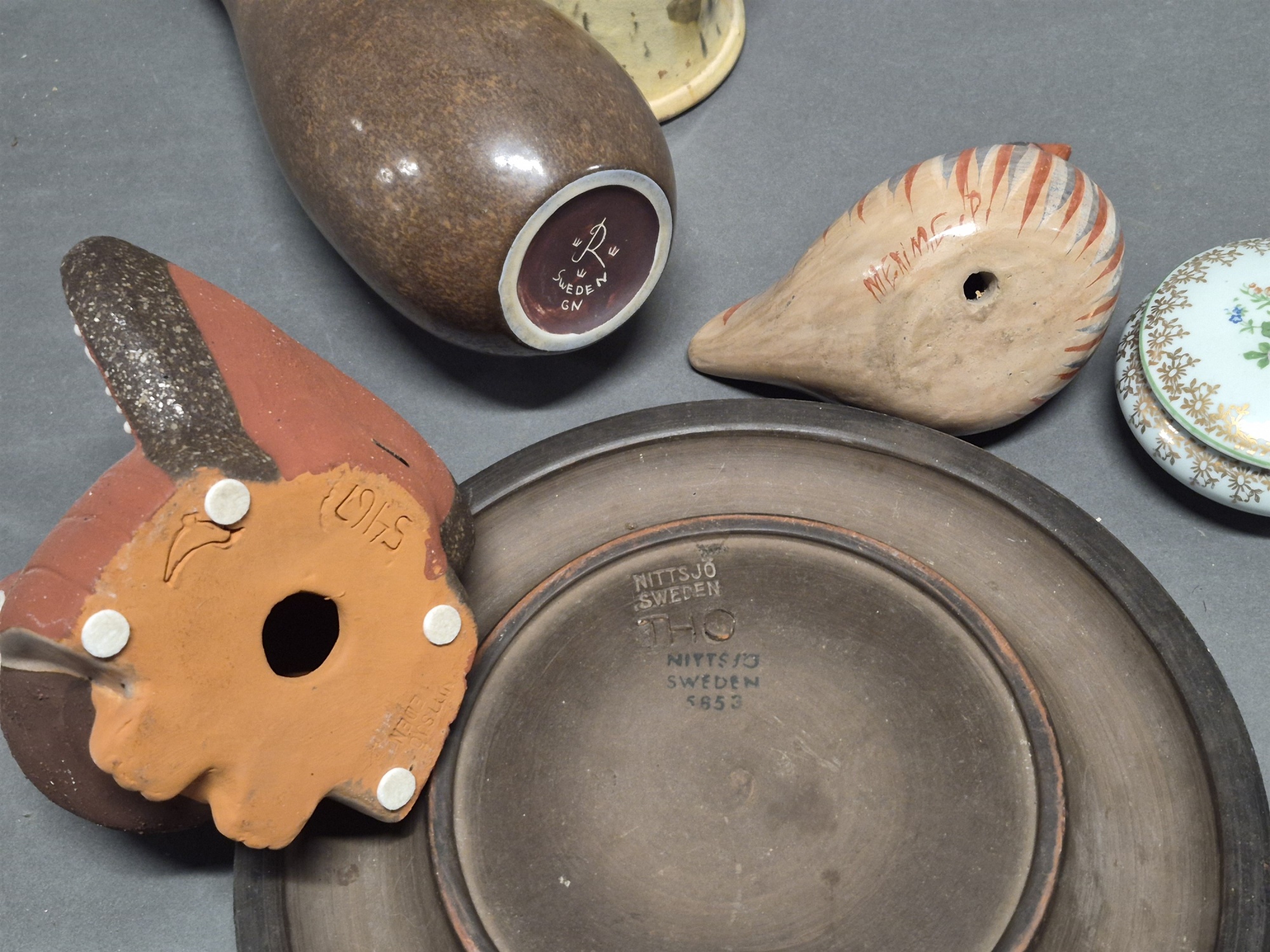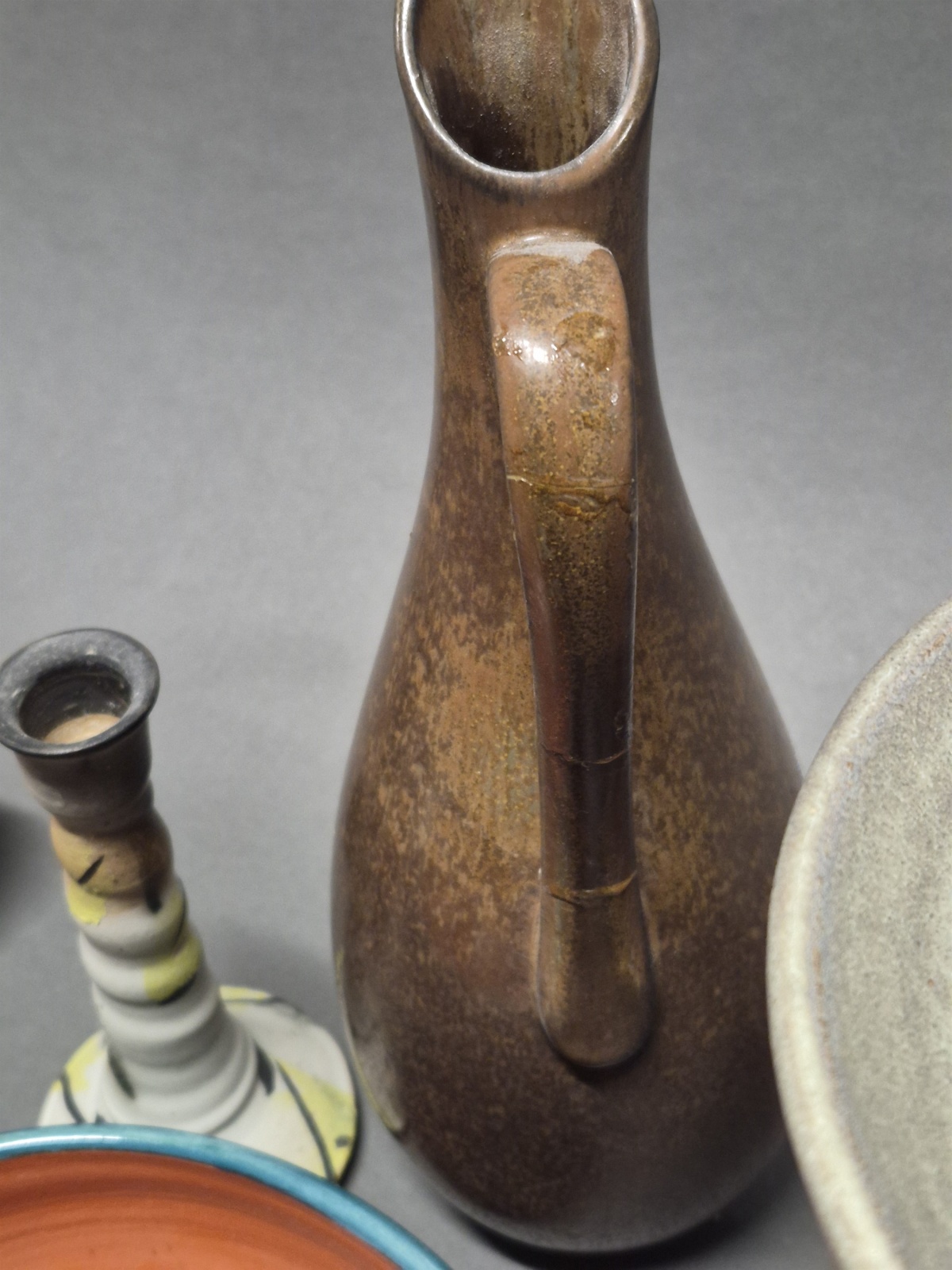 Parti keramik bl.a Thomas Hellström Nittsjö högsta 34 cm G.Nylund kanna lagad se bild
