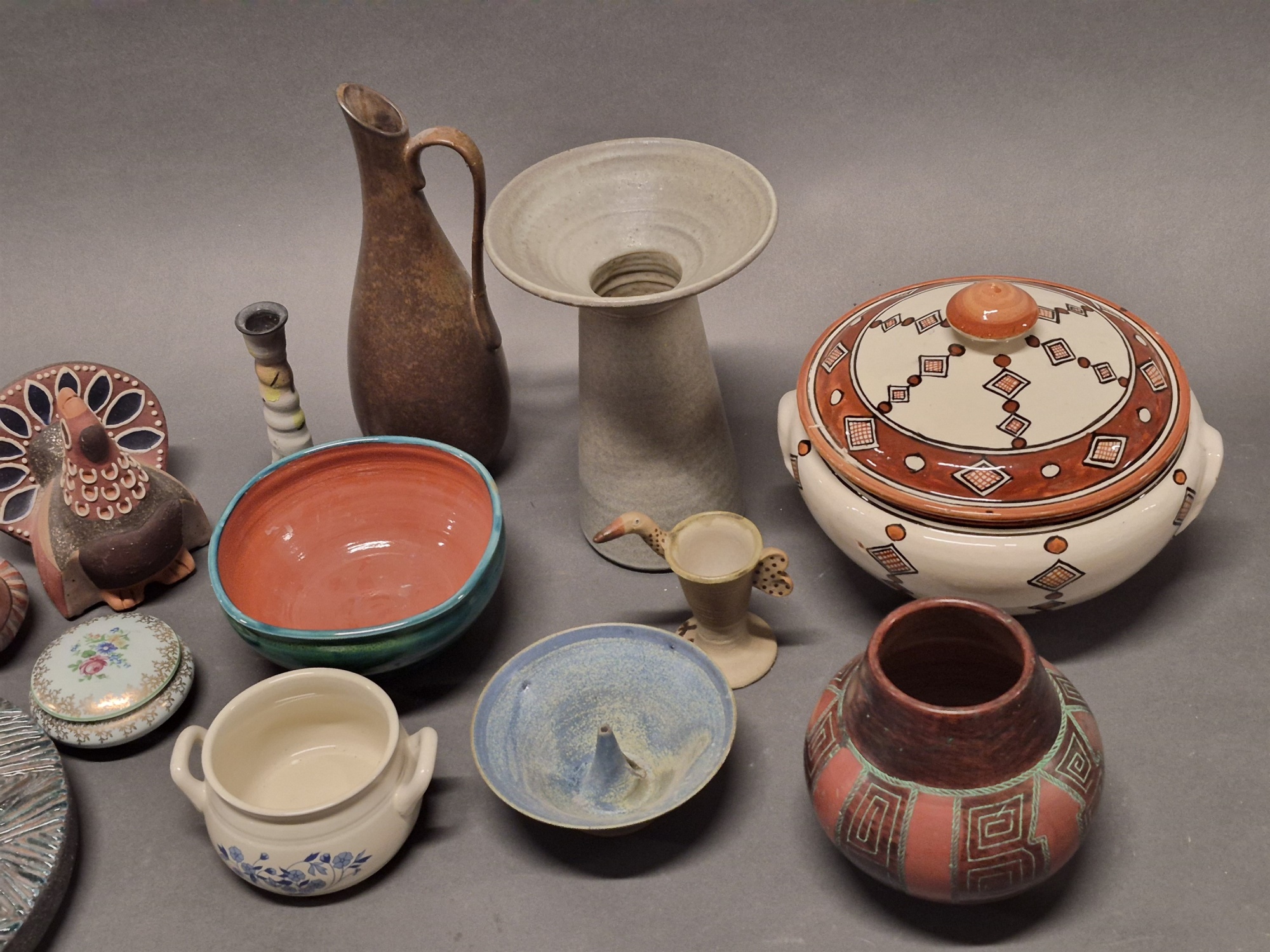 Bilder Parti keramik bl.a Thomas Hellström Nittsjö högsta 34 cm G.Nylund kanna lagad se bild
