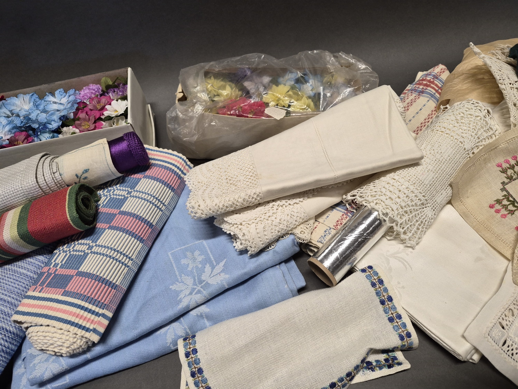 Bilder Parti textilier bla dukar, någon fläck finns