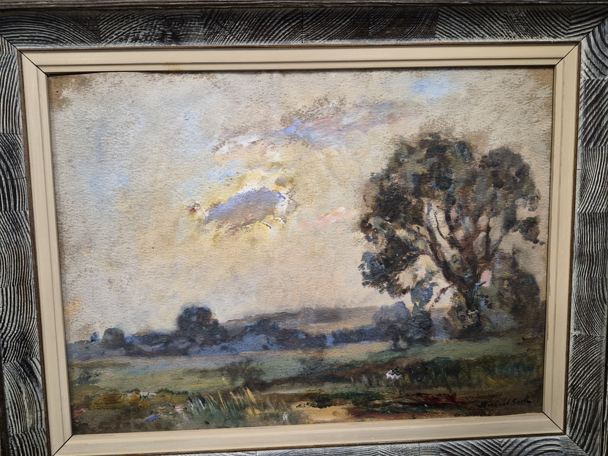 Oljor på duk och papper 2 st, landskapsmotiv, största mått 39x31 cm