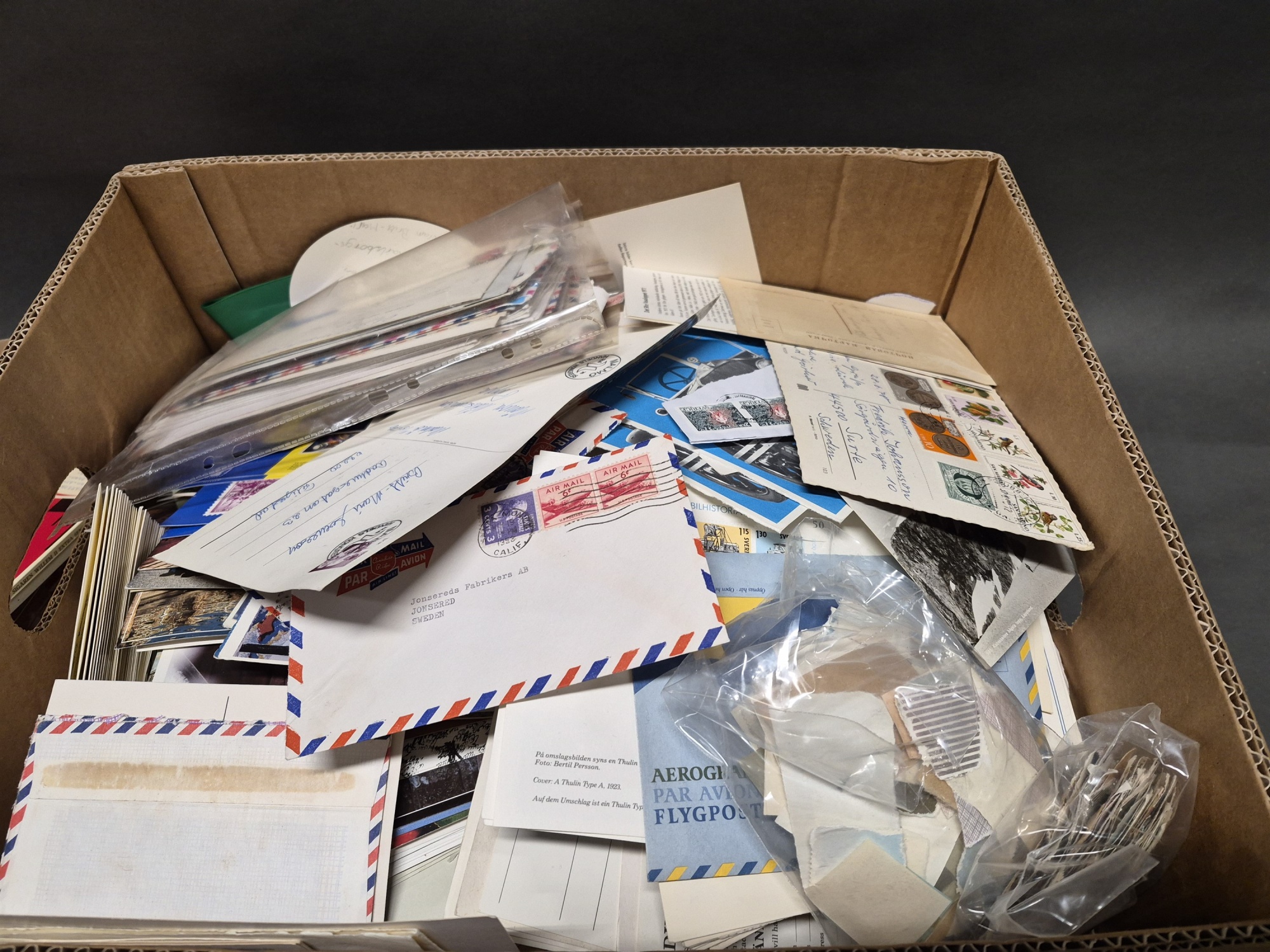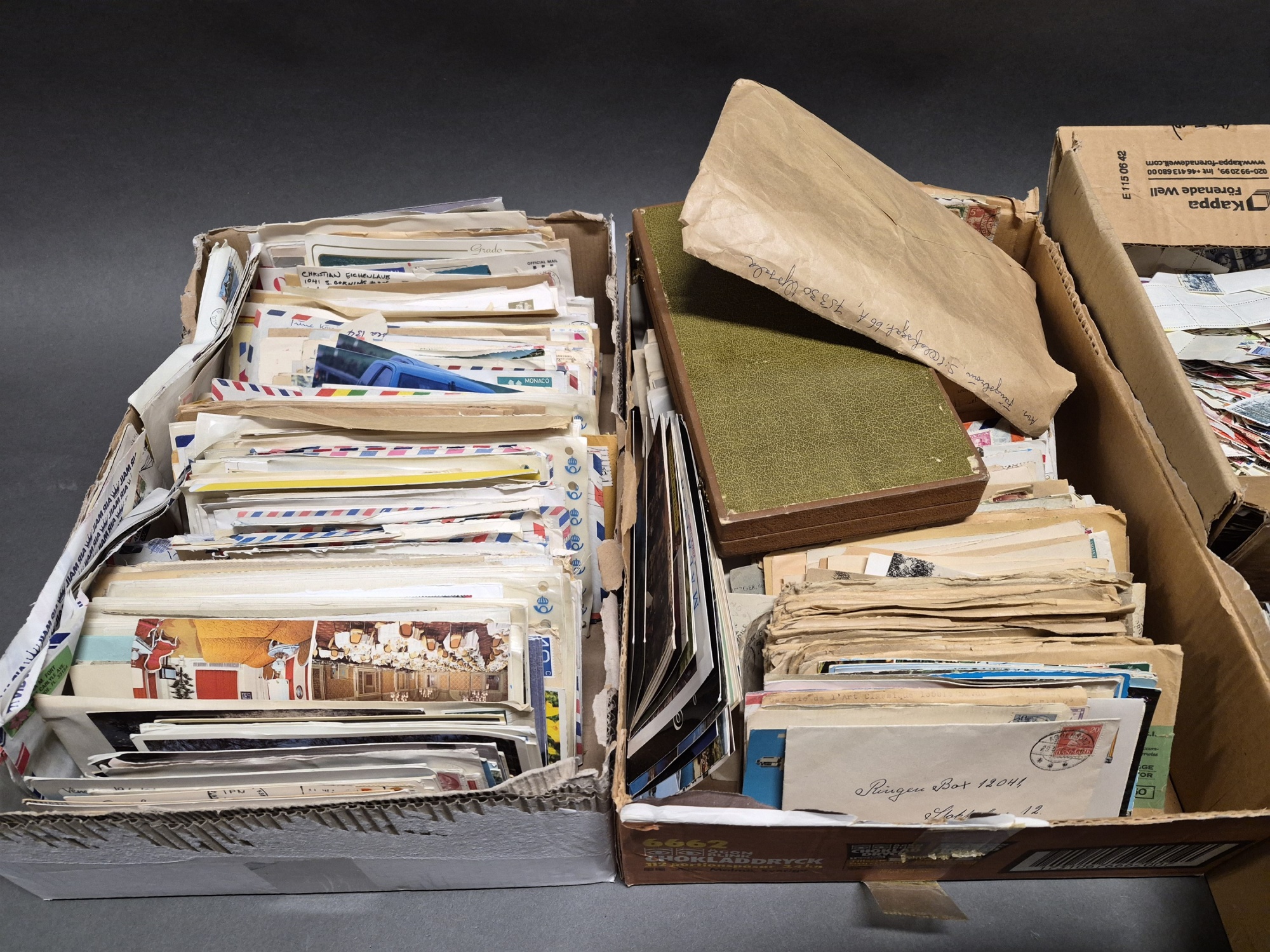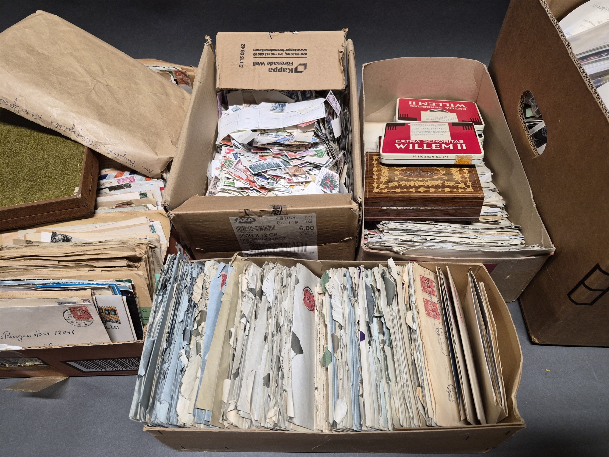 Parti brev och frimärken, 2 lådor