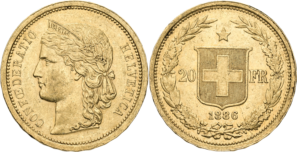 Bilder SCHWEIZ / SWITZERLAND. 20 francs 1886