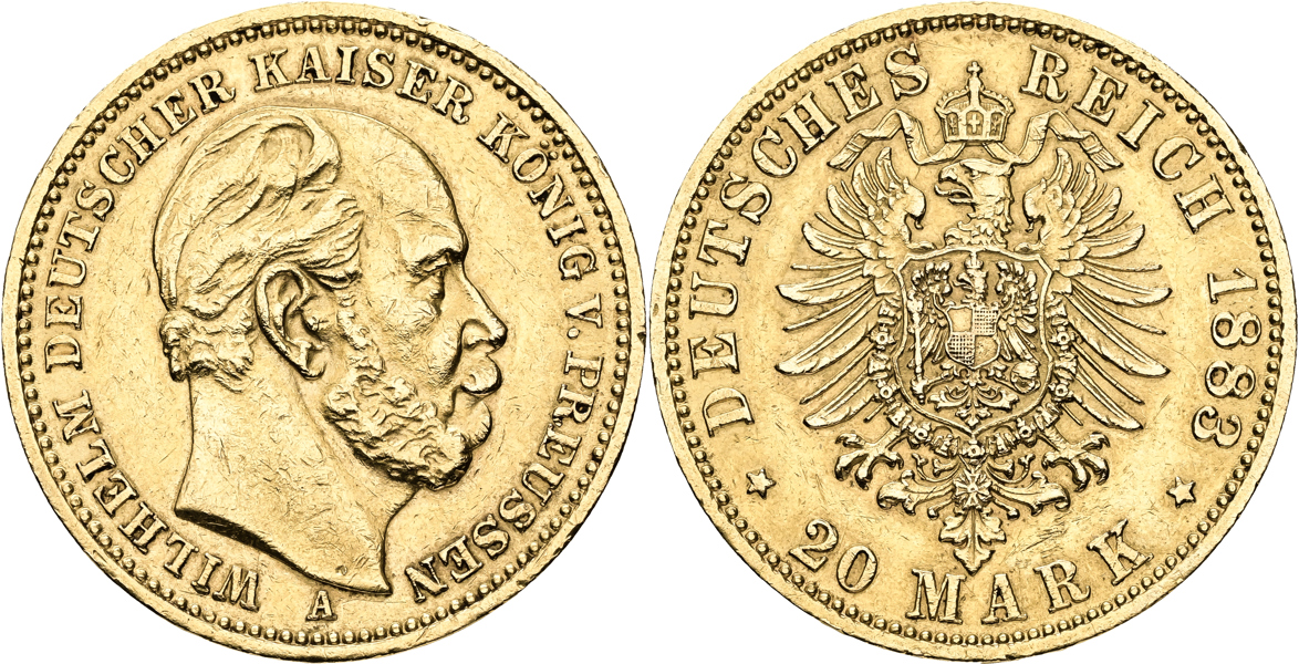 TYSKA STATER / GERMAN STATES. Preussen. 20 mark 1883
