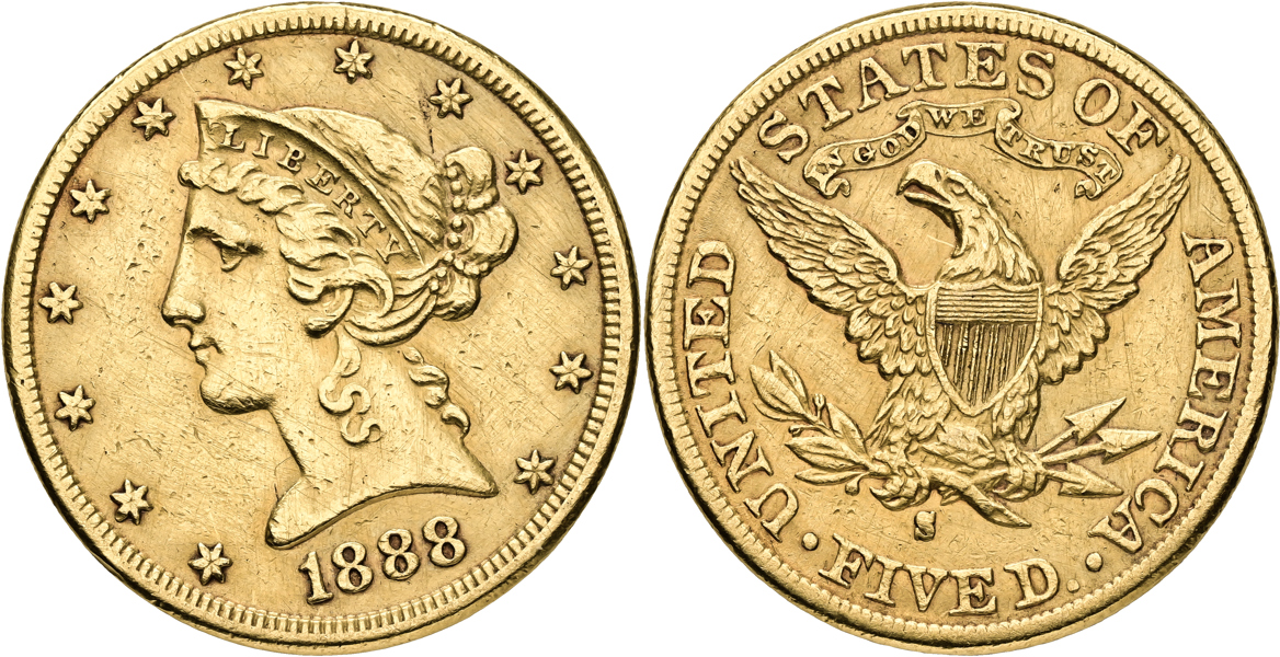 USA. 5 dollars 1888