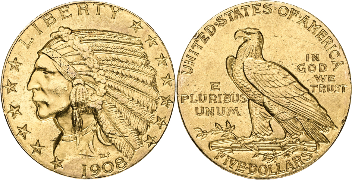 USA. 5 dollars 1908. 8,35 g. (900/1000)