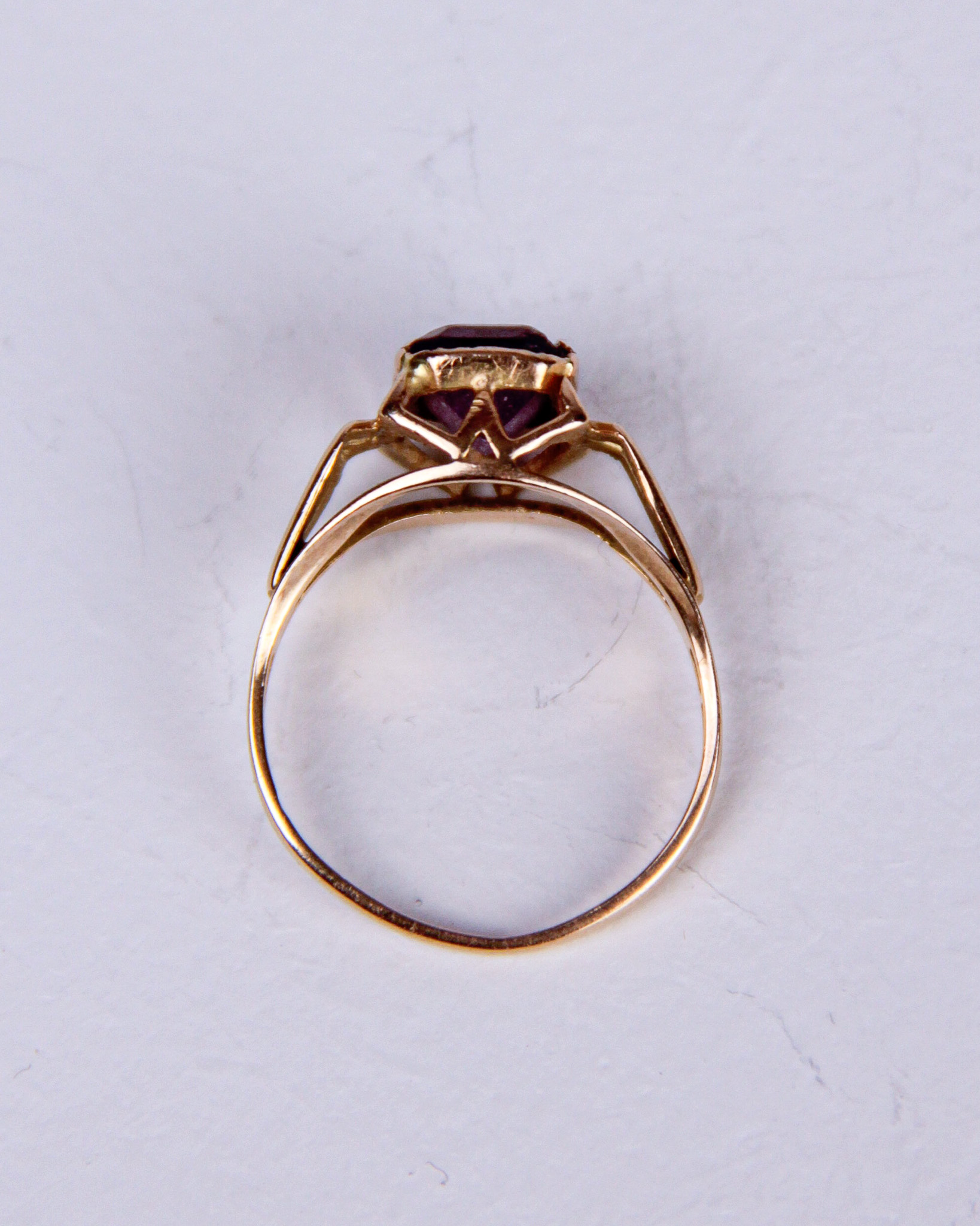 Ring, 18K guld, slipad ametist, stämplad kattfot