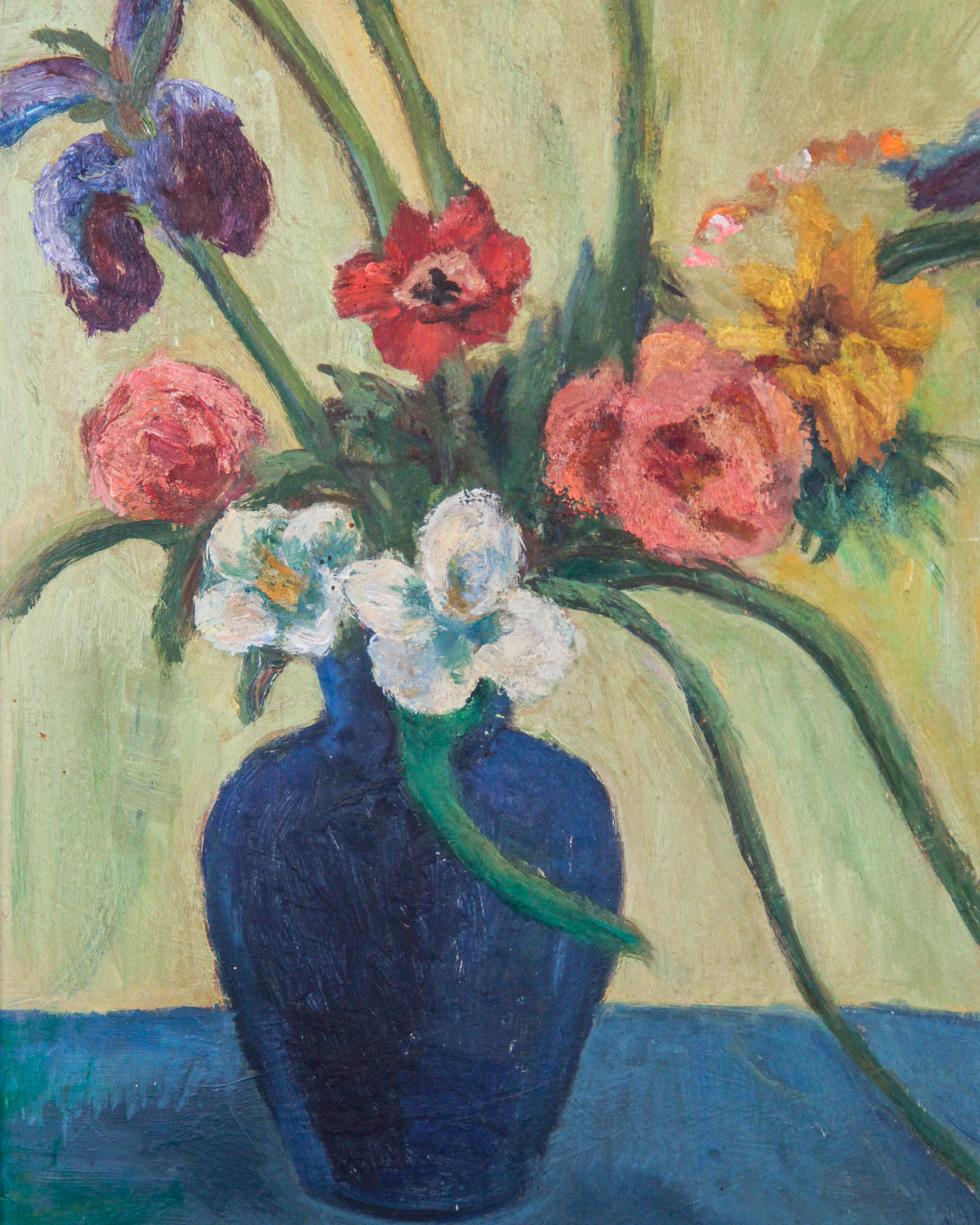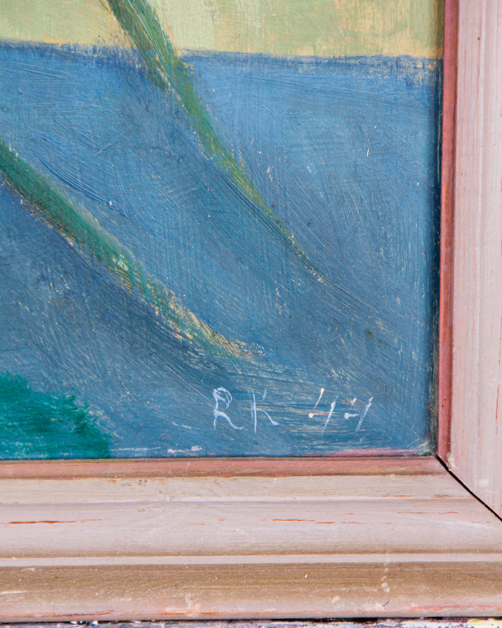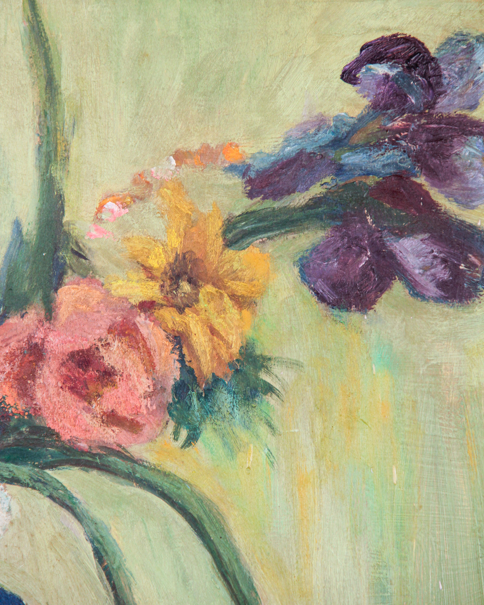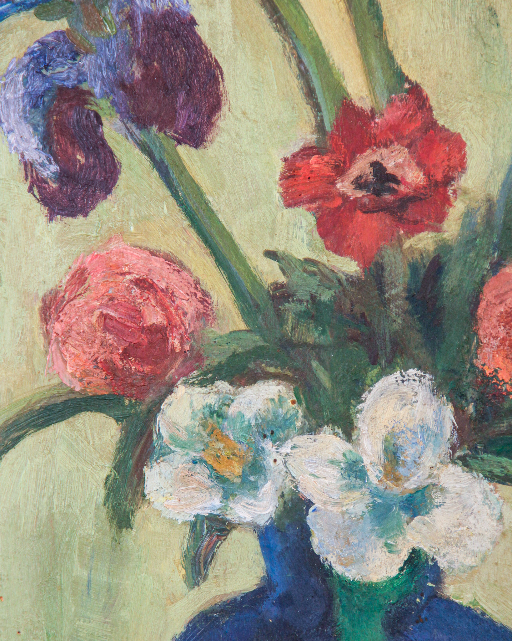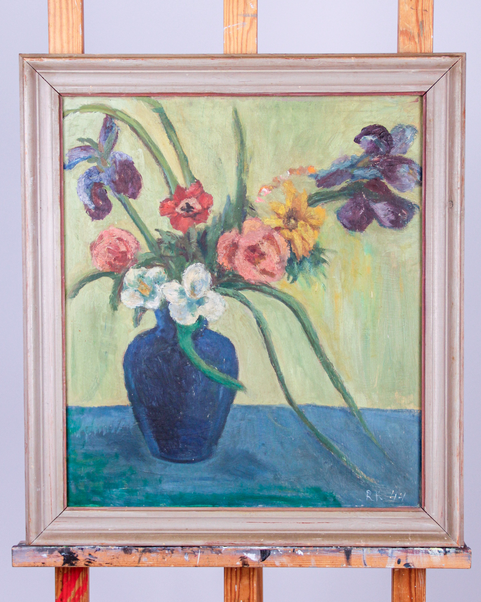 Olja på pannå, blomsterstilleben, signerad RK, daterad -44