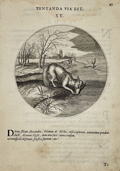 Bilder Jacob Cats (1577-1660) – The Fox on the Ice – Engraving (1618)
