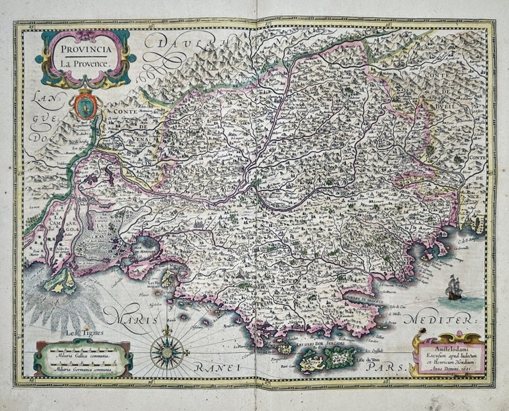 Bilder Henricus Hondius (1597-1651) – Map of Provence – France – Hand-coloured engraving (1635)