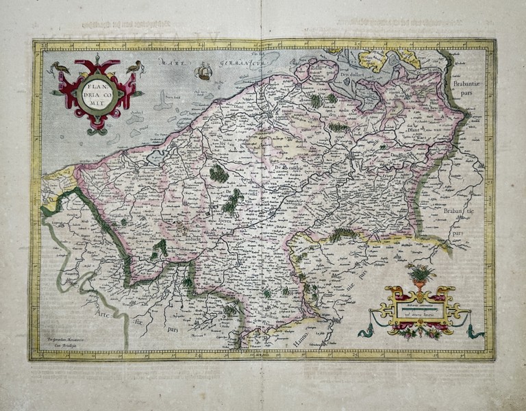 Bilder Henricus Hondius (1597-1651) – Map of the County of Flanders – Belgium – Hand-coloured engraving (1635)