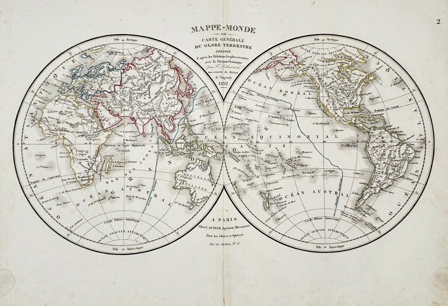 Bilder Felix Delamarche (active 1820-1850) – World Map – Hand-coloured engraving (1832)