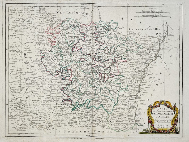 Bilder Paolo Santini (Active 18th Century) – Map of the Governments of Lorraine and Alsace – France – Hand-coloured engraving (1776)