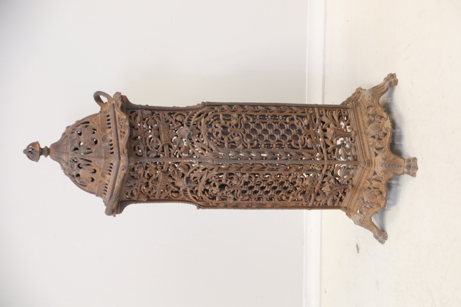 Bilder Fotogenlykta i form av kamin, gjutjärn, Salve.
