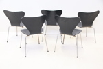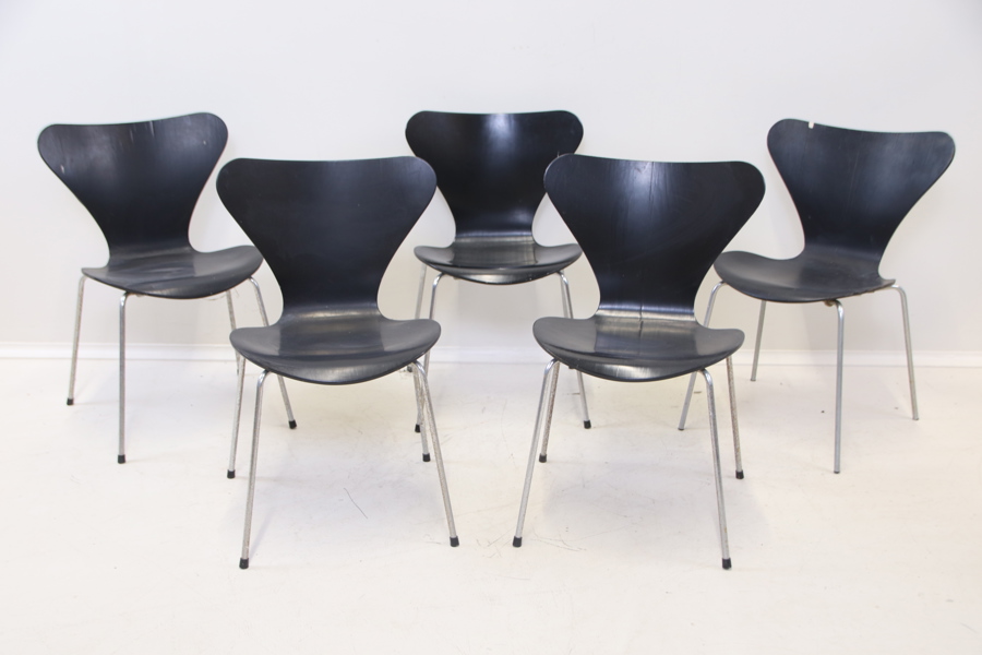 Bilder Arne Jacobsen, stolar, 5 st, trä/krom, "Sjuan", Fritz Hansen.
