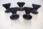 Arne Jacobsen, stolar, 5 st, trä/krom, "Sjuan", Fritz Hansen.