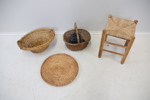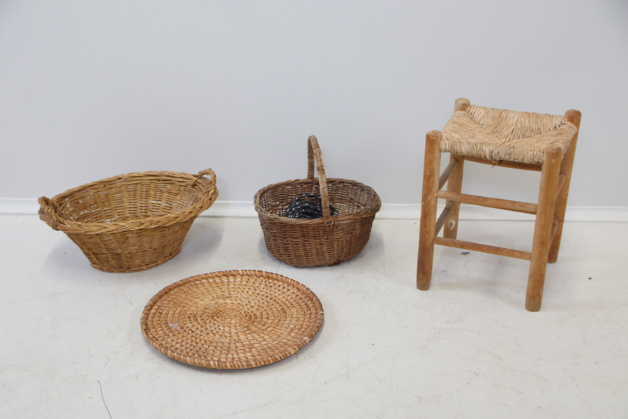 Bilder Pall och korgar, 1+3 st, flätade/trä.