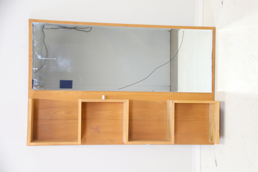 Hallmöbel med spegel och hyllor, trä.